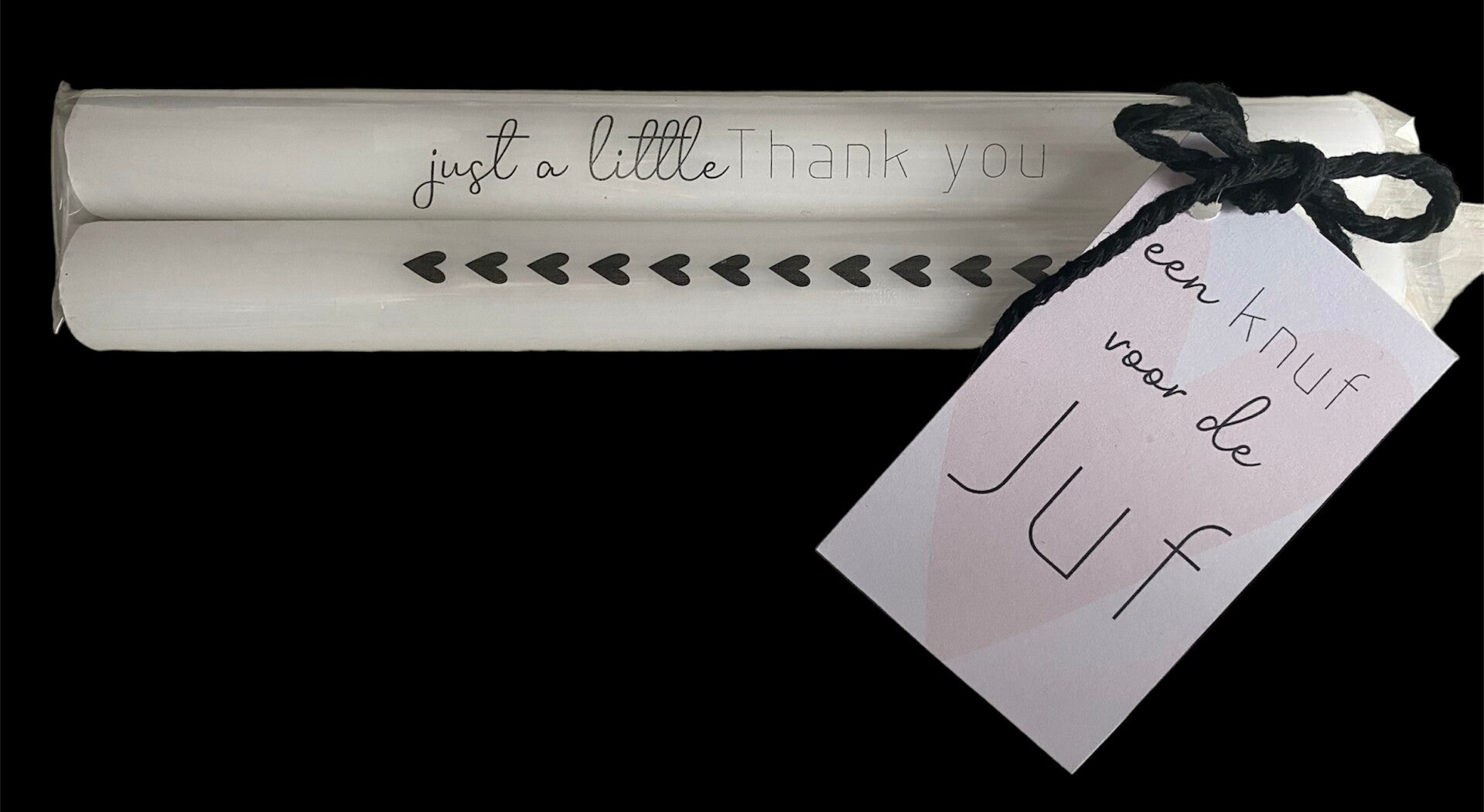 Kadoset kaarsen voor de juf met een lief kaartje